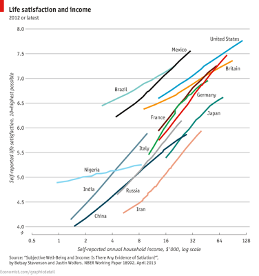 So I dig deeper into this area and I found another (recent) study Subjective Well-Being and Income:Is There Any Evidence of Satiation?